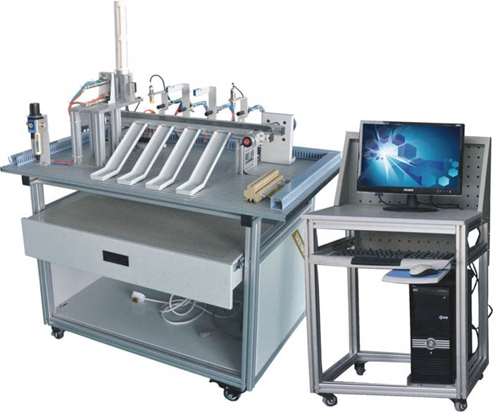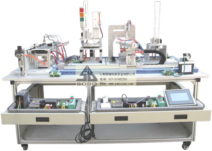 機電一體化技術實訓設備是指機械技術、電工電子技術、微電子技術、信息技術、傳感器技術、接口技術、信號變換技術等多種技術進行有機地結合,并綜合應用到實際中去的技能實訓綜合技術,現代化的自動生產設備幾乎可以說都是機電一體化的設備。自動化生產線實訓考核系統,可以培養和提高學生專業綜合能力,是一種重要的實訓設備。自動化生產線實訓系統、基于PLC技術的自動化生產線實訓考核系統,可以培養和提高學生專業綜合能力,是一種重要的實訓設備。自動化生產線實訓系統整體包括自動供料、檢測傳輸、檢測加工、自動裝配、自動分揀等工序,很好的將機械技術、微電子技術、電工電子技術、傳感測試技術、接口技術、信息變換技術、網.絡通信技術等多種技術有機地結合。該系統中自動分揀站的設計過程,包括系統硬件設計、PLC控制設計和程序設計方法。現代化的自動生產設備的最大特點是它的綜合性和系統性,在這里,機械技術、微電子技術、電工電子技術、傳感測試技術、接口技術、信息變換技術、網絡通信技術等多種技術有機地結合,并綜合應用到生產設備中:而系統性指的是,生產線的傳感檢測、傳輸與處理、控制、執行與驅動等機構在微處理單元的控制下協調有序地工作,有機地融合在一起。可編程序控制器(PLC)以其高抗干擾能力、高可靠性、高性能價格比且編程簡單而廣泛地應用在現代化的自動生產設備中,擔負著生產線的大腦一微 處理單元的角色。因此,培養掌握機電一體化技術,掌握PLC技術及PLC網絡技術的技術人材是當務之急。而一套基于PLC技術的自動化生產線實訓考核設備可以模擬一個與實際生產情況+分接近的控制過程,使學習者得到一個非常接近于實際的教學設備環境,從而縮短了理論教學與實際應用之間的距離。自動分揀站需完成對上一單元送來的已加工、裝配的工件進行分揀。使不同顏色的工件從不同的料槽分流的功能。當輸送站送來工件放到傳送帶上并為入料口光電傳感器檢測到時,即啟動變頻器,工件開始送入分揀區進行分揀。上海碩博弘揚大國工匠精神, 發展職業教育,應用教學設備,為企業培養高技能人才,而專業生產:光機電一體化(自動生產線)實訓裝置、灌裝自動化生產線實訓裝置、工業自動生產線實訓裝置 、工業控制模擬實訓裝置 、機電一體化組合實訓平臺 、機電一體化綜合實訓考核裝置、自動化生產安裝與調試實訓裝置 、光機電一體化高速分揀實訓系統 、典型機電設備安裝與控制實訓裝置、模塊式柔性自動環形生產線實驗系統(帶機器人工程型)、立體停車庫實物教學實驗裝置、機電一體化柔性生產線加工實訓系統(5站)、網絡型模塊式柔性自動化生產線實驗系統、模塊式柔性自動環形生產線實驗系統(工程型)、柔性生產制造實驗系統(工程型)、現代物流倉儲自動化實驗系統、運動實訓裝置、循環搬運自動控制實訓裝置、平面雙軸運行控制實訓裝置、工業機械手實訓裝置、物料分揀實訓裝置、機械手實訓裝置 、立體倉庫實訓裝置、十字路口交通燈實訓系統、機電液氣一體化綜合實訓裝置、光機電一體化高速分揀實訓系統、步進伺服控制綜合實訓平臺、光機電氣一體化控制實訓系統、 光機電一體化綜合實訓考核裝置、光機電一體化實訓考核裝置、光機電一體化實訓考核裝置、光機電氣一體化控制實訓系統、自動生產線拆裝與調試實訓裝置、柔性自動化生產線實訓系統。