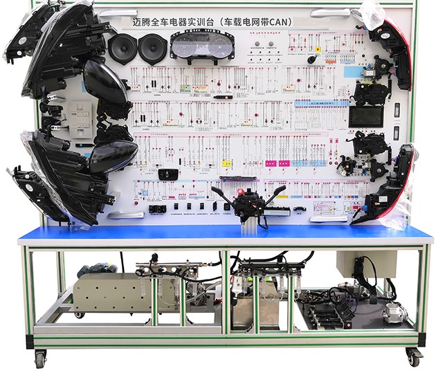 汽車電氣設備實訓室。汽車電器設備實訓室包含有汽車燈光系統(tǒng)、車載網(wǎng)絡系統(tǒng)、全車電器系統(tǒng)、汽車啟動系統(tǒng)、汽車空調(diào)系統(tǒng)、全車線路試驗臺、等實訓教學設備。該實訓室可以承擔《汽車構(gòu)造》、《汽車電器設備》、《汽車電控系統(tǒng)》、《汽車檢測與診斷》等課程的實踐教學任務。可以用于研究、分析全車電器系統(tǒng)、燈光系統(tǒng)、儀表系統(tǒng)等電器設備的電路及功能。利用這些系統(tǒng)進行實踐教學,使學生熟悉汽車電器的結(jié)構(gòu)和工作原理,掌握各個系統(tǒng)的基本組成電路,掌握主要電路的檢測方法和系統(tǒng)的故障特征,從而具有一定的檢測和調(diào)校能力。