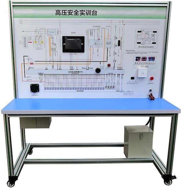 3.面板上安裝有點(diǎn)火開(kāi)關(guān)、電動(dòng)汽車真實(shí)鋰電池組,電動(dòng)汽車安全維修塞插頭模塊,高壓電路仿真系統(tǒng),安全繼電器組件,漏電保護(hù)模塊與模擬操縱開(kāi)關(guān)。