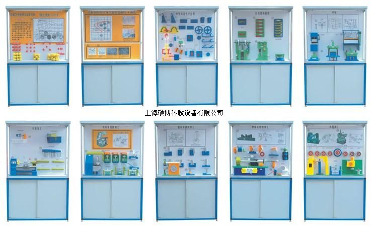 它由一個控制臺和十個陳列柜組成為一套。金屬工藝是一門綜合性的技術基礎課,是機械類、近機類和管理類專業的必修課。通過本陳列柜學習,學生將獲得關于金屬工業全過程中工程材料及其改性、毛坯成型及其選擇、零件成型及其裝配等方面的基礎知識。