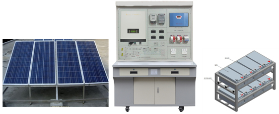 室外太陽(yáng)能電池方陣 室內(nèi)光伏發(fā)電教學(xué)系統(tǒng) 室內(nèi)蓄電池架