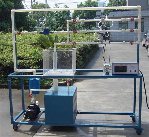 主要配置:移動式不銹鋼實驗臺、循環水箱;計量水箱;循環水泵;d=40mmd=32mmd=20mmd=15mm測試管段;渦輪流量計;孔板流量計;文丘里流量計;翼片流量計;差壓傳感器;8點巡檢儀等。計算機接口。