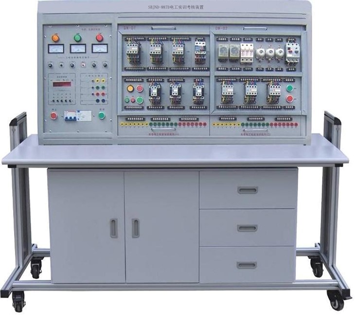 電工技能實訓(xùn)考核裝置是根據(jù)電工實訓(xùn)考核的實際情況而設(shè)計的集技能培訓(xùn)、培訓(xùn)考核鑒定于一體的多功能設(shè)備,以標(biāo)準(zhǔn)的配電柜為主柜,合理利用柜體的雙面空間.科學(xué)地布置各種低壓電氣設(shè)備。