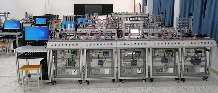 PLC及電氣控制綜合實訓室、電氣控制與PLC綜合實訓室配備有s7-200、s7-1200、西門子s7-300PLC、三菱PLC、PLC實訓考核臺、機電一體化系統、智能電氣控制PLC實訓電氣控制實訓裝置,電子電氣工控實訓臺,PLC可編程控制器,電動機等。要求學生根據題目自己設計實驗方案、準備相關材料、動手操作并記錄實驗實訓結果,培養學生掌握電氣技術,PLC技術,各種低壓電器和自動化設備的安裝、調試、維護技能。